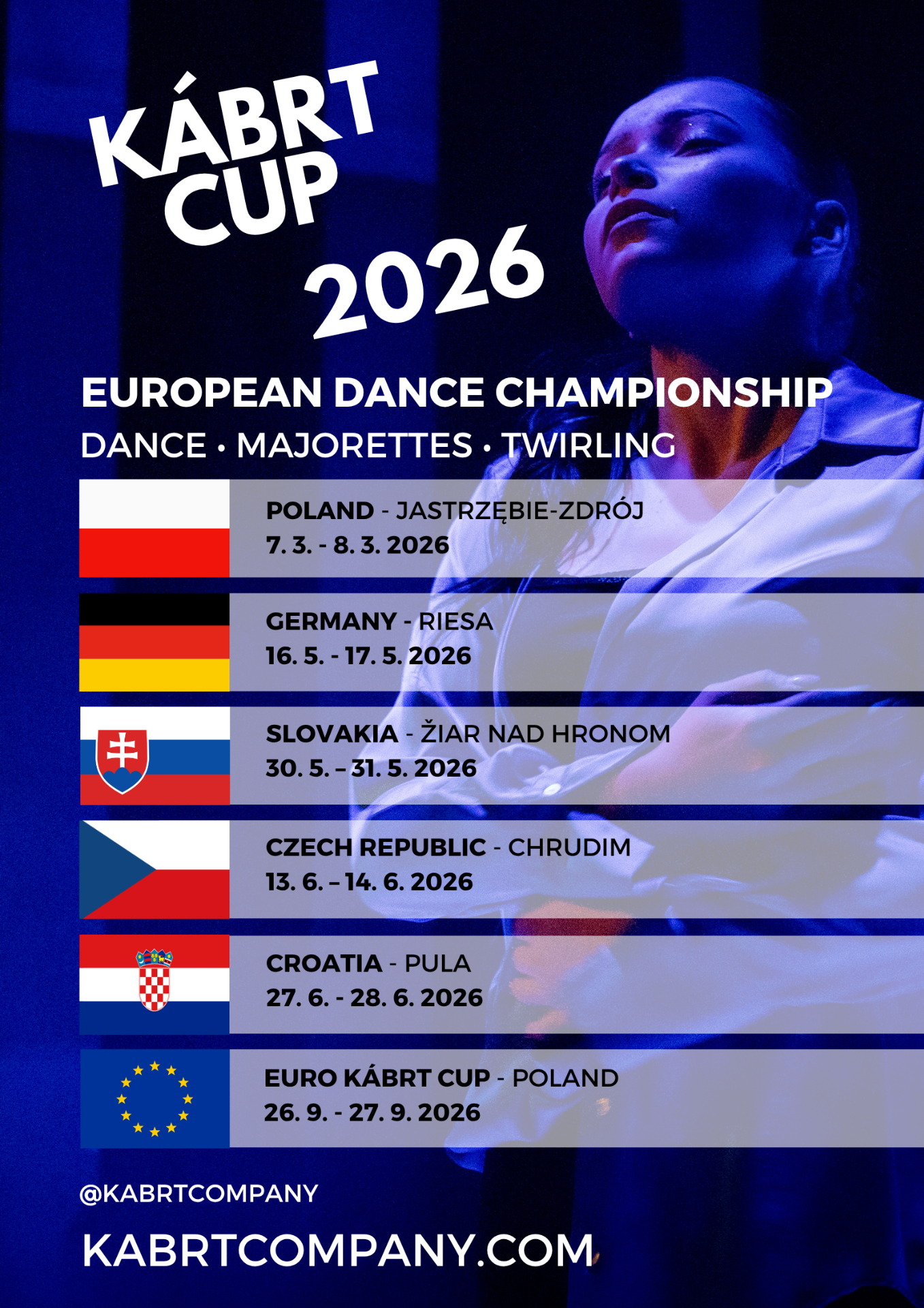 Kábrt Cup is a European dance competition that unites nations through dance. The concept is continuously expanding across Europe, and in 2026 it will take place in: the Czech Republic, Slovakia, Poland, Germany, and Croatia.