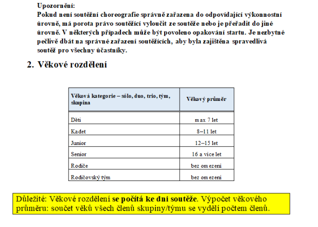 Presné vymedzenie jednotlivých výkonnostných úrovní nájdete v oficiálnych pravidlách súťaže. Prosíme preto o ich dôkladné preštudovanie.